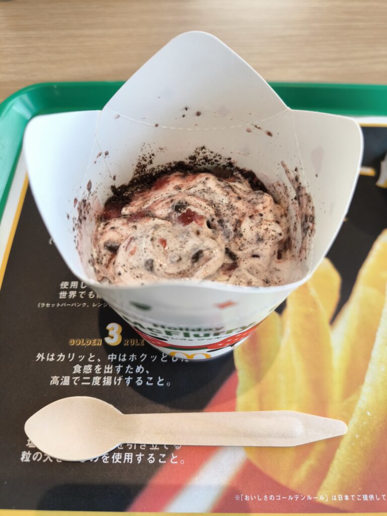 あと、今回の注文で初めて知ったのですが、マックでは注文をするときに申し付けばハンバーガーやポテトなどの食後に食べられます!デザートを食べるタイミングで店員さんに見せれば作ってくれます。
